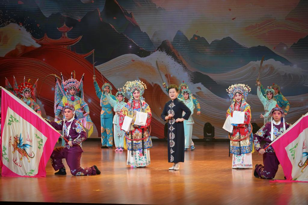 戏曲《薪火赓续》融合传统唱腔与创新编排,用戏曲特有的程式语言,讲述艺术传承的永恒主题。老中青三代戏曲人同台演绎《大登殿》选段,生动诠释了戏曲艺术代代相传、永不断流的精神本质。