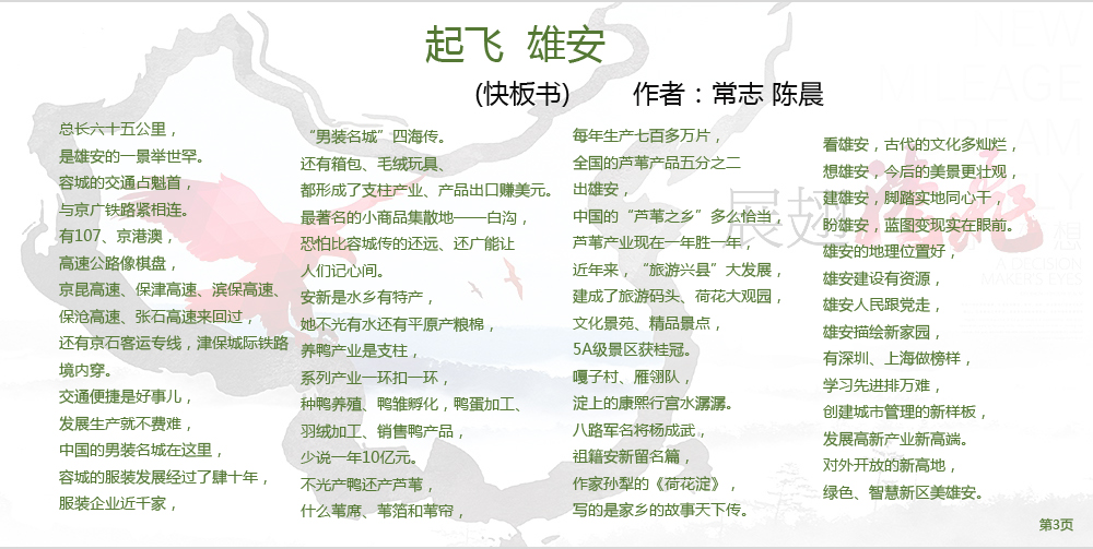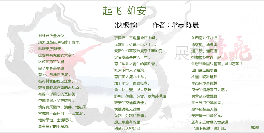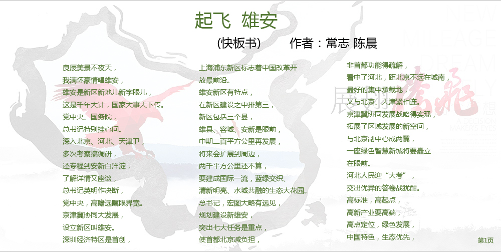 近日,由著名快板书表演艺术家常志先生与我院青年教师陈晨激情创作的快板书作品《起飞雄安》新鲜出炉,该作品以雄安新区为素材,歌颂新时代,弘扬正能量,表达了对于美好未来的无比期望。