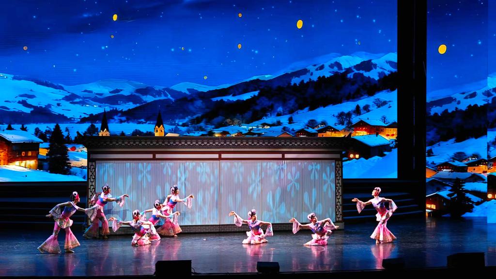 舞蹈系38名师生倾情演绎了《俏影灯人》《蝶影花香》《艺彩燕赵》三个风格各异的舞蹈节目。《俏影灯人》以灵动的舞姿和巧妙的构图,描绘出灯影阑珊下的俏皮与生机;《蝶影花香》则以柔美飘逸的韵律,勾勒出一幅花香引蝶、和谐唯美的自然画卷;压轴登场的《艺彩燕赵》气势恢宏,将河北深厚的历史文化底蕴与时代精神相融合,通过刚柔并济的舞蹈语汇,展现了燕赵大地的壮丽风采与昂扬向上的时代风貌。