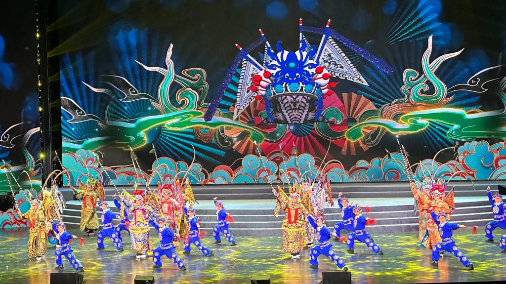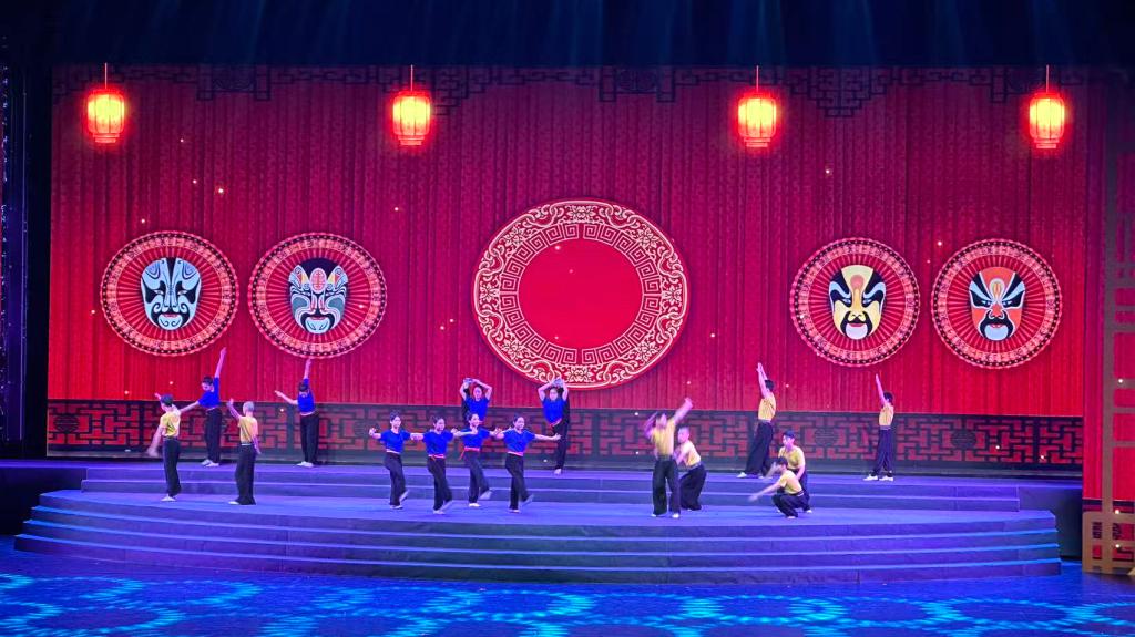 晚会现场星光璀璨,气氛热烈。戏剧系16名学子参与的戏曲武戏《燕赵戏韵》节目巧妙地将戏曲学子在学院的日常学习场景艺术化地呈现在舞台上,生动展现了戏曲艺术“台上一分钟,台下十年功”的传承真谛,通过学子们从青涩到成熟的成长历程,彰显了学院“以戏育人、以文化人”的教学理念,体现了传统艺术薪火相传的深厚内涵,以独特的创意和真挚的情感打动了在场观众。