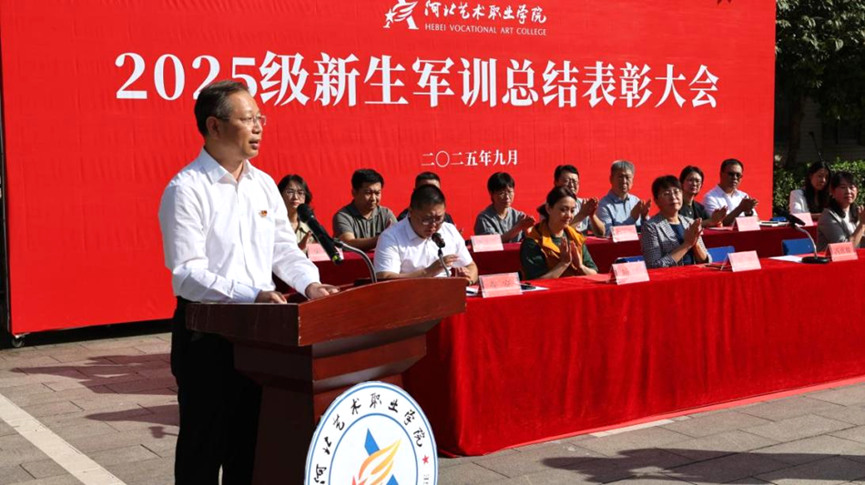 9月30日,河北艺术职业学院2025级新生军训总结表彰大会在青园街和漓江道两校区同步举行。学院党委书记蒋国新、院长冯彦瑞、副院长金暄、纪委书记董萱、副院长张明泉,各专业系、行政处室负责人,新生辅导员及全体新生参加大会。
