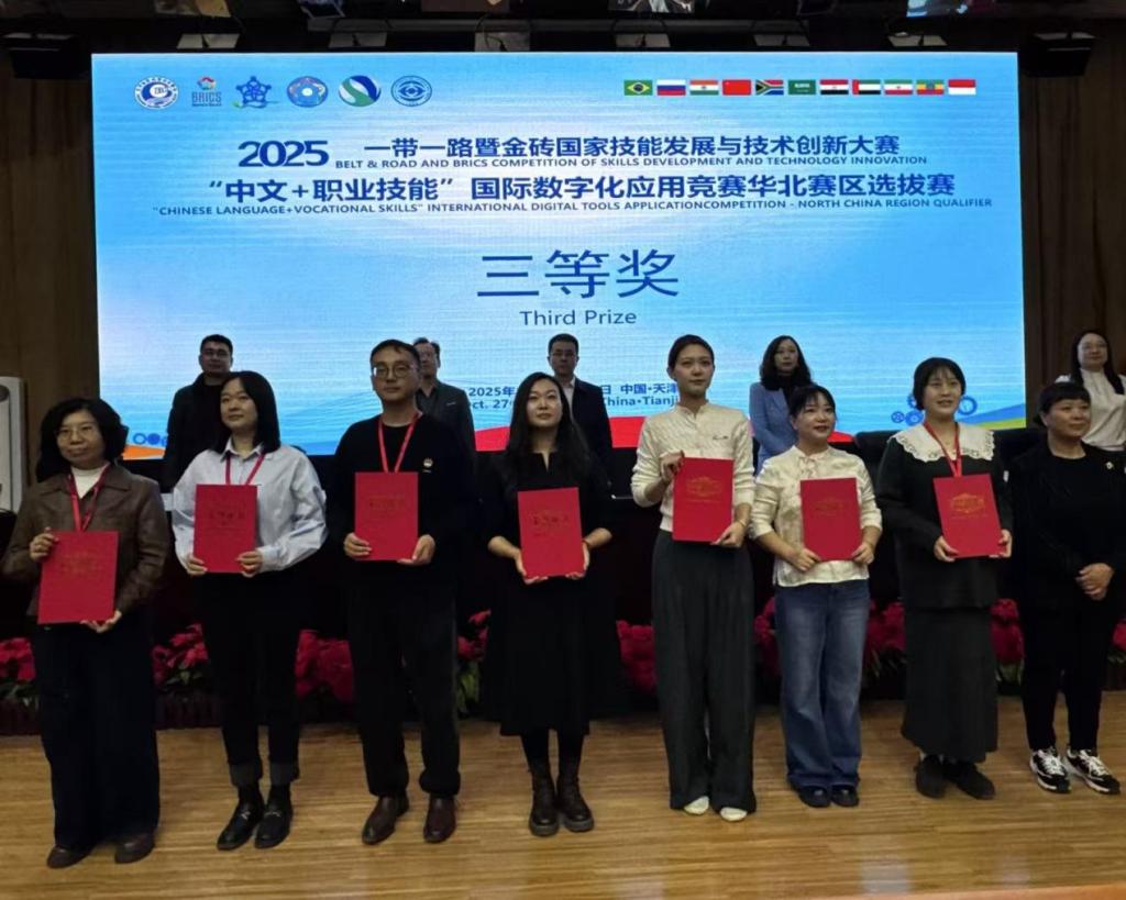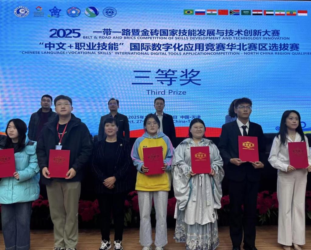 10月27日至29日,河北艺术职业学院艺术教育系、舞蹈系师生在2025“一带一路”暨金砖国家技能发展与技术创新大赛“中文+职业技能”国际数字化应用竞赛华北赛区选拔赛中奋勇争先,斩获学生组一等奖1个、二等奖5个、三等奖3个及教师组三等奖1个。