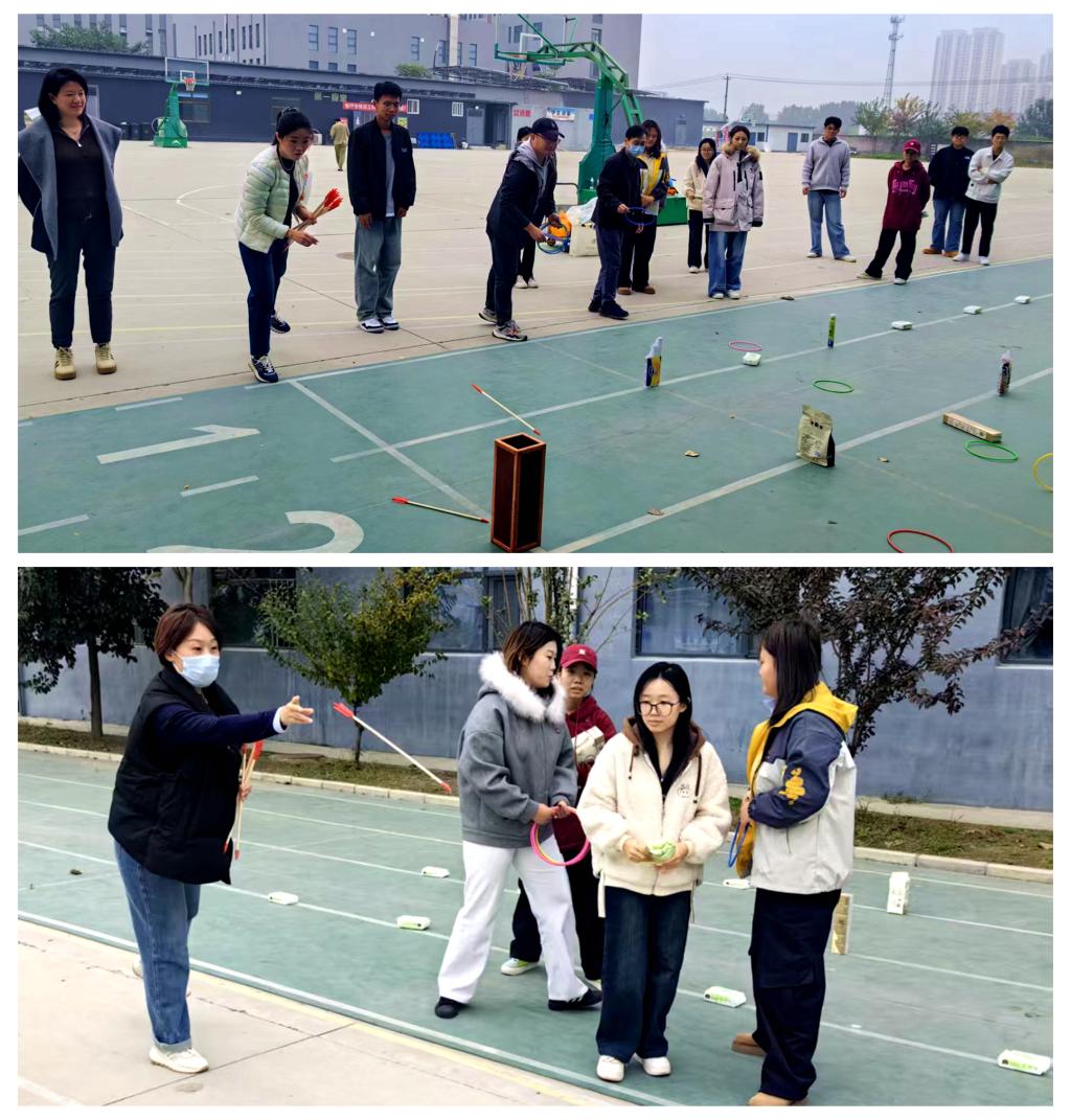 本次运动会由学院工会文体委员会精心策划组织,学生工作部、基础教学部等部门给予大力支持,活动秉持“快乐运动、促进交流”的宗旨,鼓励大家在轻松愉快的氛围中放松身心、增进情谊,活动吸引了众多教职工的积极参与。教职工可根据个人兴趣自由选择,随到随参与六个集趣味性、参与性于一体的项目:在投壶场地,老师们凝神静气,力求精准;室内高尔夫项目则考验着大家的控制与耐心;跳绳区身影跳跃,活力四射;“扔手榴弹”(沙包投掷)项目勾起了许多人的童年回忆;套圈场地趣味横生,喝彩声此起彼伏;定点投篮更是展现了老师们在运动中的另一面风采。活动现场气氛热烈,欢声笑语不断。