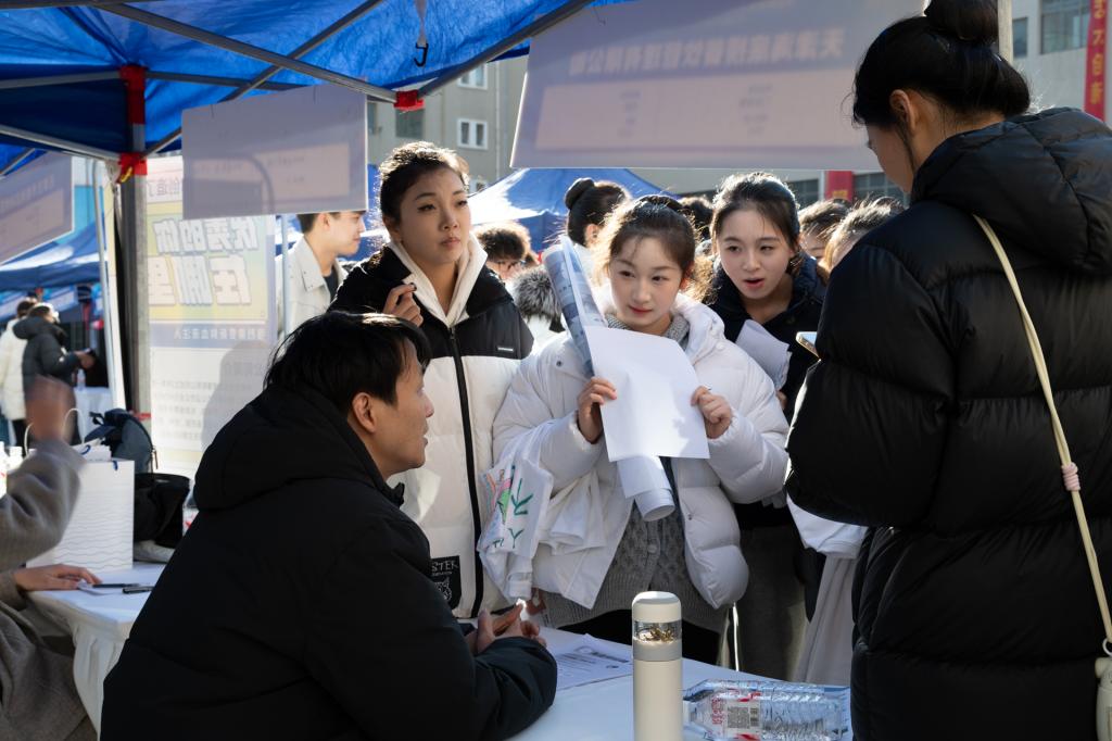 来自省内院校艺术类毕业生在展位前咨询就业问题