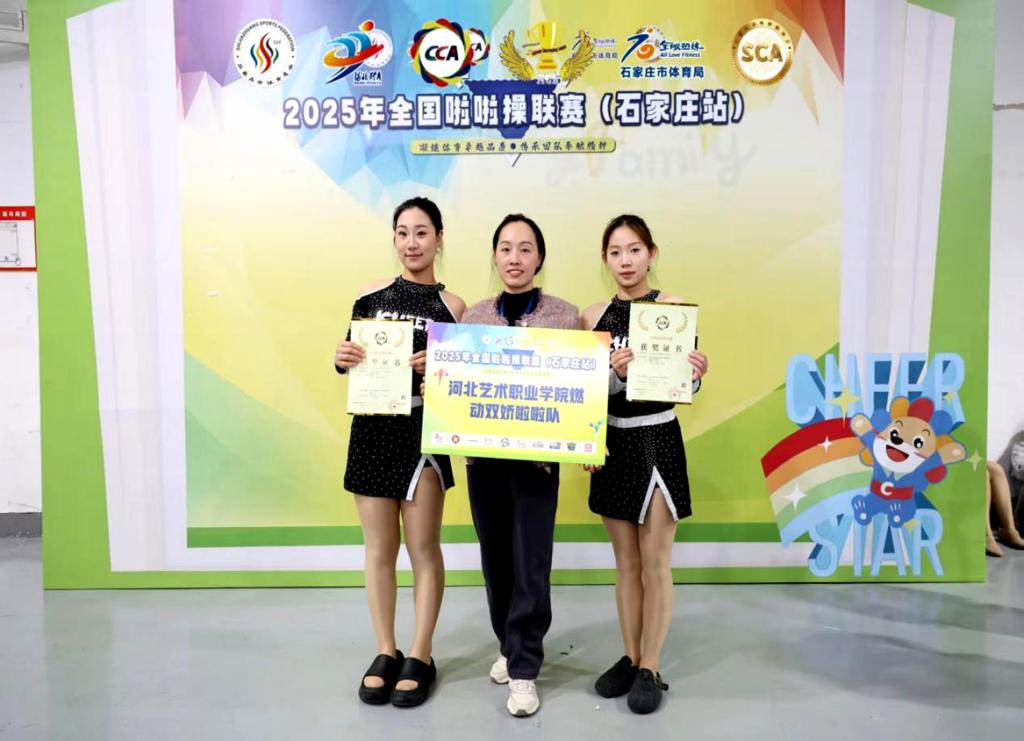 11月29日,2025年全国啦啦操联赛在石家庄国际博览中心举行,河北艺术职业学院学子取得女子双人花球自编套路第2名的好成绩。