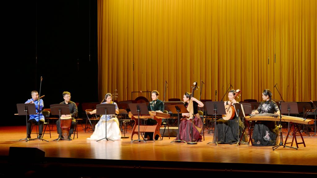 河北艺术职业学院民乐合奏《敦煌》则带领观众穿越千年、感受丝路文明的璀璨辉煌。宏大的结构、丰富的音色与深邃的意境将莫高窟的瑰丽壁画、丝路古道的历史烟云,化为可听、可感的磅礴音响,使听众步入一个用音乐构筑的“听觉敦煌”。
