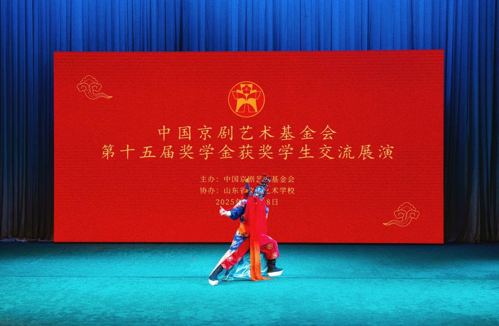 本次活动由中国京剧艺术基金会主办,在山东省文化艺术学校举行。我院戏剧系青年教师李晓洁入围现场教学交流展示环节,并在27日进行了课程展示。其教学设计兼顾专业传承与教学创新,得到现场专家的关注与认可。在28日的第五届奖教金暨第十五届奖学金颁授仪式上,李晓洁荣获第五届“中国京剧艺术奖教金”,2021级中职戏曲表演专业学生汪俊男、宋亚轩荣获第十五届“中国京剧艺术奖学金”。随后的获奖学生交流演出中,汪俊男表演了《盗马》窦尔墩选段“单人独骑下山岗”,展示出扎实的舞台功底。