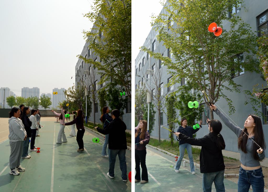 活动特邀空竹专家现场献艺,高速旋转的空竹在大师手中上下翻飞、嗡嗡作响,展现了这项国家级非物质文化遗产的独特魅力。精湛的技艺令在场师生叹为观止,近距离感受到传统体育游艺的深厚底蕴。