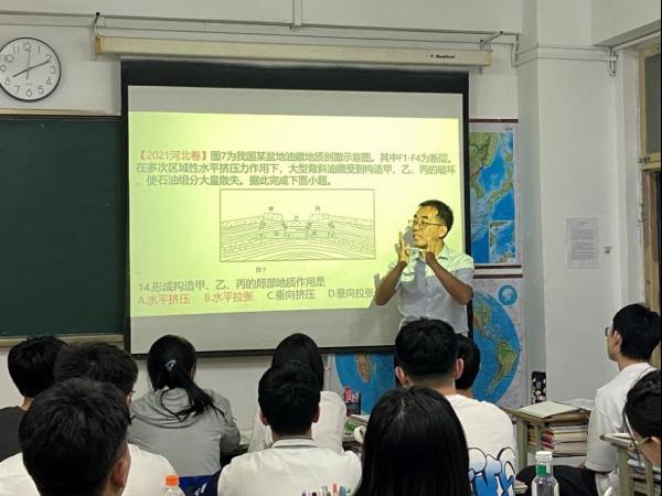 张建勇老师是石家庄一中地理教学的领军人物。5月28日,张老师首先以历年高考真题为依托,深入浅出地揭示了每道题目的考查点。通过张老师的分析,同学们发现这些看似复杂的试题背后,其实都有着清晰的逻辑和规律。张老师带领大家回归课本,引导同学们在字里行间寻找线索,在书本中去发现高考试题的源头活水。