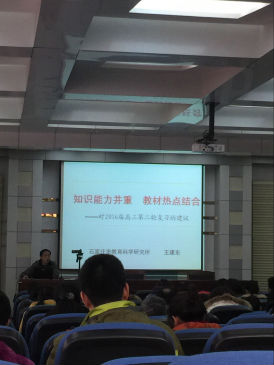 2015年12月19日上午9:00石家庄市高三毕业班政治学科复习教学二轮培训在河北师范大学附属实验中学顺利举行。本次做课的教师是正定中学的崔素欣老师、石家庄实验中学的张玉涛老师、市教科所的王建东老师。大家主要围绕着“如何把握规律,掌握备考主动权”,“如何系统梳理课本知识”以及“后期复习建议”等方面展开了研讨,气氛热烈,效果明显。我院基础部政治教师也参与了研讨,受益匪浅。(高丽英供稿)