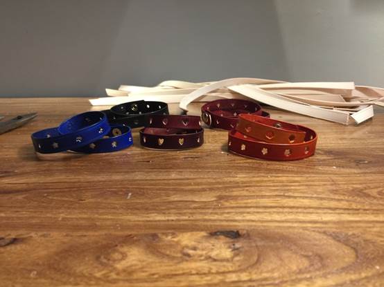 2、 对皮条进行染色,晾干之后用牛角油进行油脂补充(染色剂会带走一部分油脂)