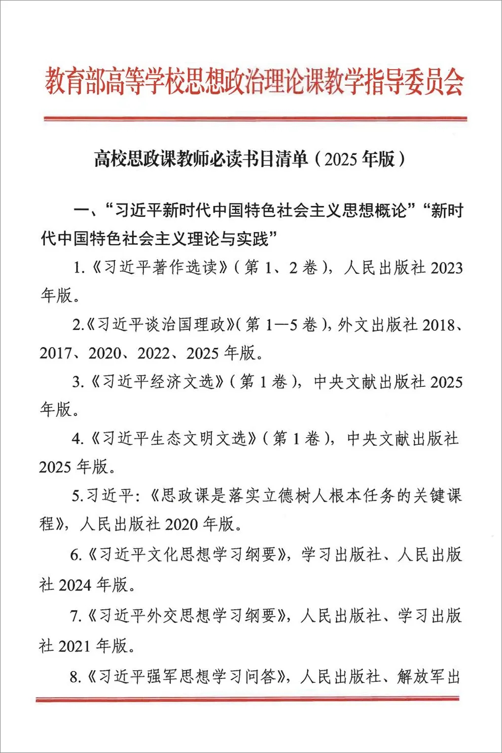 为此,教育部高校思政课教学指导委员会精心研制了《高校思政课教师必读书目清单(2025年版)》,多方面、多维度地帮助思政课教师养成读马克思主义经典、悟马克思主义原理的生活习惯和精神追求。