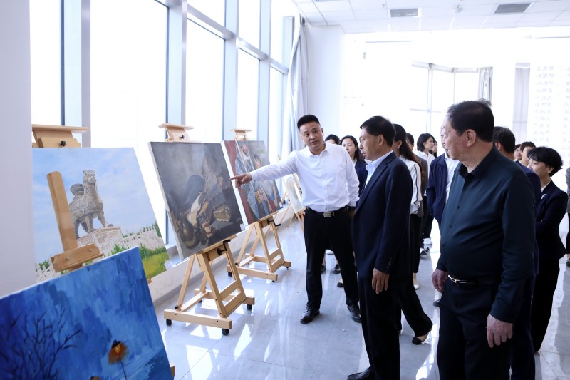 会后,学院领导与部分与会嘉宾参观了服装与传媒艺术类教学成果展。
