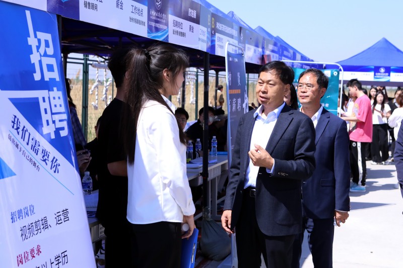 于桂亭结合六十余载的职业生涯,与同学深情分享他的人生感悟。人生需要拥有四种能力:第一是适应,第二是自信,第三是悟性,第四是情怀。所谓适应,就是适者生存,对自身有一个清醒的认识,适应当前的大形势和未来工作场景,不驰于空想、不骛于虚声,实事求是设计好自己的人生;所谓自信,就是在校期间要掌握好一技之长,让个人有走入社会的立身之本。“不患无位,患所以立”,有了立身之本就有了底气和自信,方能迎难而上、愈挫愈勇、自强不息;所谓悟性,就是感知感悟事物的能力,通俗地说就是灵性、透亮,对任何事物都有预判和洞察的能力,能够运用恰到好处的方法处理工招聘会现场气氛热烈。学生们手持精心准备的简历,在各大企业展位前踊跃投递。招聘单位“掏家底”为学生“划重点”,耐心介绍企业情况、岗位需求、薪资待遇、晋升制度、发展空间等,现场互动十分火热。作上的问题;所谓情怀,就是内心深处对所从事职业的热爱、忠诚、投入,并保持一以贯之的执着和情感,不彷徨、不懈怠、不动摇。人才是企业持续发展的根基,企业发展需要具有工匠精神的高技能人才,沧职正是输送这种人才的摇篮。把沧州构建成从研发设计到原材料供应、工厂加工、批发兼零售、电子商务、文化休闲、旅游购物于一体的全国最大的服装集散基地是东塑的梦想,也是沧州人共同的梦想。同学们在沧州这方热土,大有用武之地。只要大家齐心协力,个人梦、企业梦、城市梦、中国梦,梦梦相连,梦想一定能够成真。