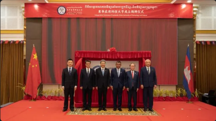 2023年12月柬华应用科技大学成立揭牌仪式现场