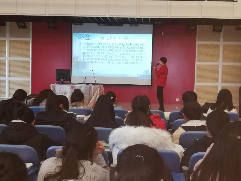 党的十八大以来,习近平总书记关于教育工作的系列重要讲话中,把师德师风建设作为提升新时代教师素质、办好人民满意教育的首要任务,提出了一系列师德建设的标准和要求。立德垂范是教师最基本的职业道德。为了帮助大一学生在入学初期就深刻认识到师德的重要性,锤炼良好品格,11月28日下午,我系邀请河北电力幼儿园园长王艳来到我院南校区为大一新生进行了主题为“做有温度的教育”的主题讲座。此次讲座也为我系“优秀教师成长之路”系列讲座的一部分。