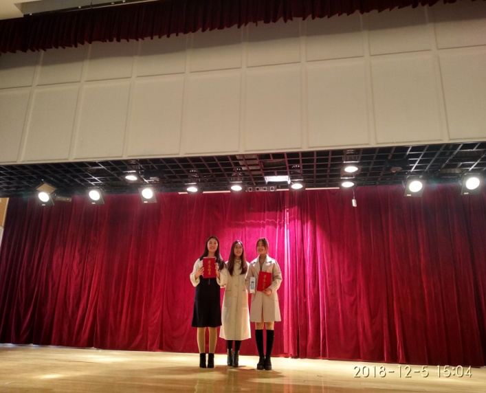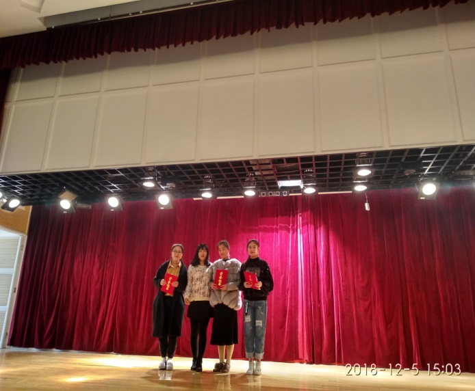 经过三轮紧张的PK,角逐出了第一名是樊俊研;第二名是高晓羽,李佳蔚;第三名是钱新雨,王凤娇,魏依诺,优秀奖有六位同学,分别是:吴娜,梁佳怡,陈佳瑶,董亚玉,王月颖,邵雪婷。三位评委老师为他们颁发了奖品和证书,同时和他们合影留念,同学们都非常激动。