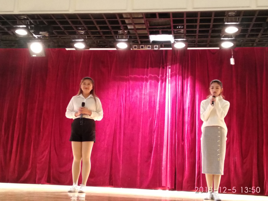 开场由吴娜同学和梁佳怡同学为大家带来的精彩演唱——《明天你好》